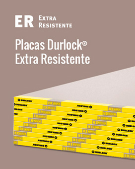 Solución para ambientes que requieren mejor aislación acústica, resistencia al impacto y al fuego. La Placa Durlock® Extra Resistente es una placa de yeso de mayor densidad y con aditivos especiales que logran un desempeño superior en espacios más exigentes.